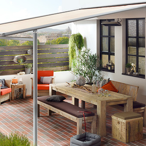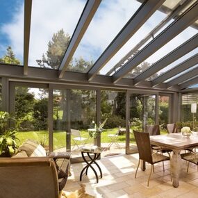 Eine Glasterrassenüberdachung mit innenliegender Markise und 6 eingebauten Beleuchtungsspots hat die Firma EBE Schmidt GmbH in Neu-Anspach für uns...